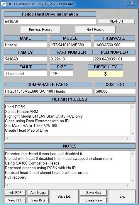 We will enter this information into the search bar and instantly see how many times we have seen the drive with its faults and let you know the chance of recovery and costs associated with it.
